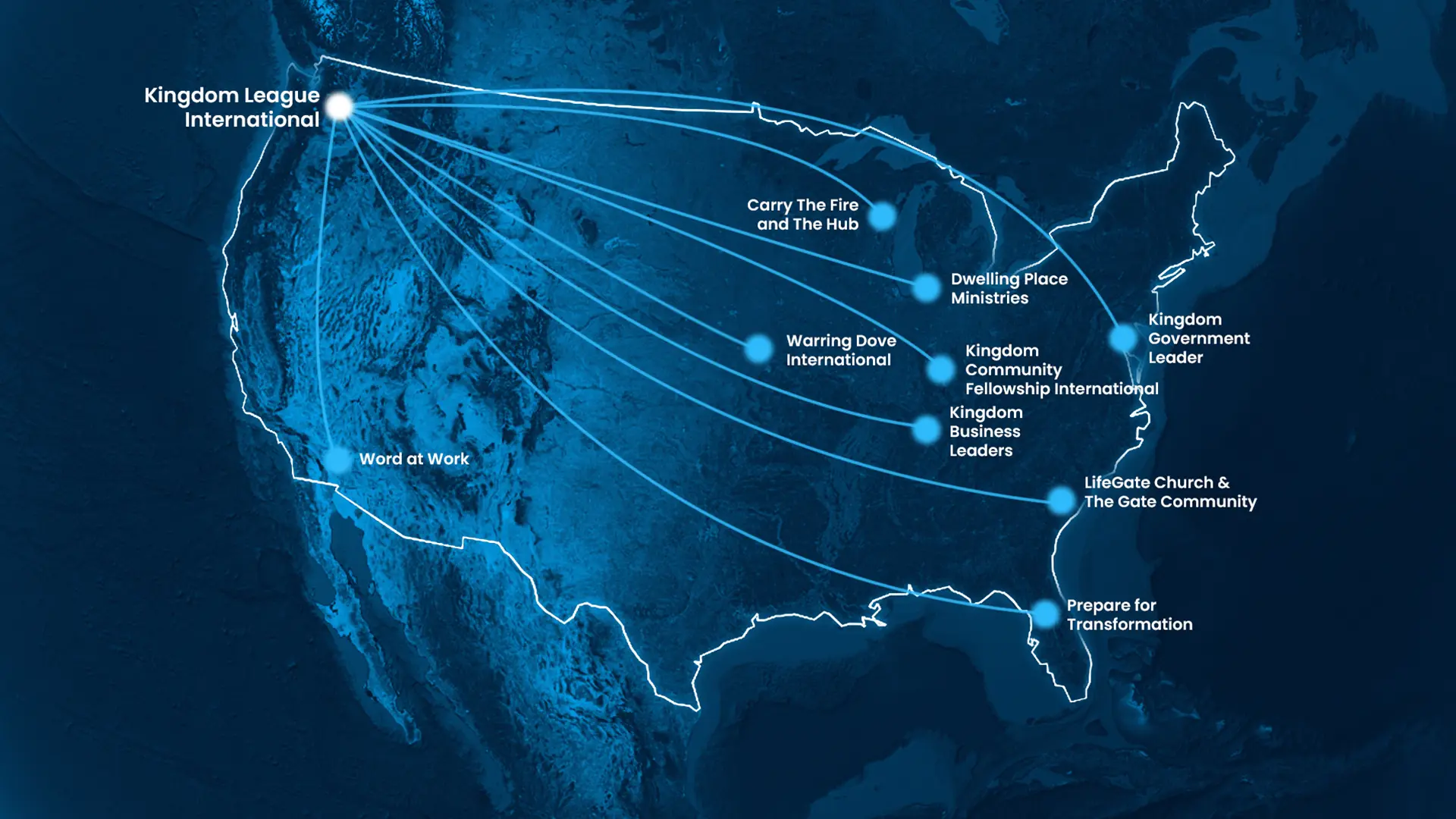 In the Northwest, see above, we saw Virginia and Dick McMannus start Watchmen on Fire while Don and Cathy Davis launched Direct Action Ministries. These two couples were elders who helped found FireStorm Ministries which was the first church/ministry to utilize KLI’s charter thereby becoming the first affiliate or auxiliary of KLI. Their goal, turn it into an apostolic hub.