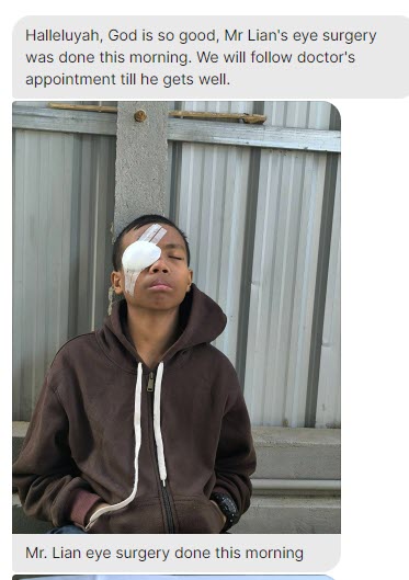 He can see again! Our little guy, Lian, can see. We just got the word, the surgery worked. It’s been only three days since we shared “Little Guy Needs Emergency Eye Surgery at our Orphanage.