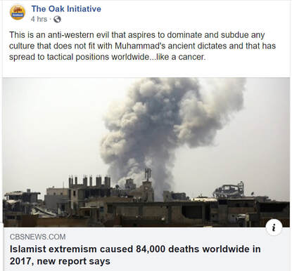 I saw this post by the Oak Initiative regarding a 2017 report provided by CBS News.  The facts presented in “Islamists extremism caused 84,000 deaths worldwide in 2017,” provide facts which help frame the term “Islamophobia” and its use in their cultural jihad!  These facts provide context to introduce radical Islam’s war on your mind.