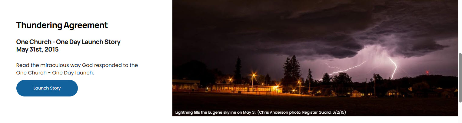 The Church in Eugene Oregon Celebrates Historic 10th Year of 1Church1Day. It was marked by thunder lightning and earthquakes at the start in 2015 and was later followed by real transformation.